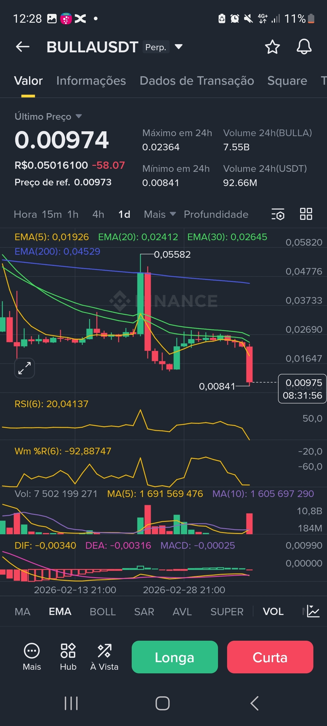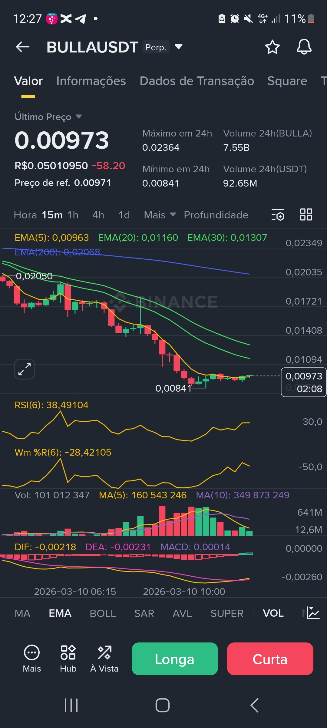 * PONTO DE ENTRADA: 0,00973 (Preço atual com confirmação de suporte no M15).