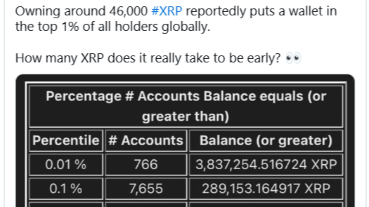 Crypto analytics account Bullrunners recently highlighted these findings in a post on X, citing verified XRP Ledger data and KuCoin analytics. According to their research, holding roughly 46,323 XRP currently places a wallet in the top 1% of all holders globally. With more than 7.65 million active wallets as of early March 2026, this benchmark emphasizes both the accessibility of XRP and the concentrated influence of elite holders.