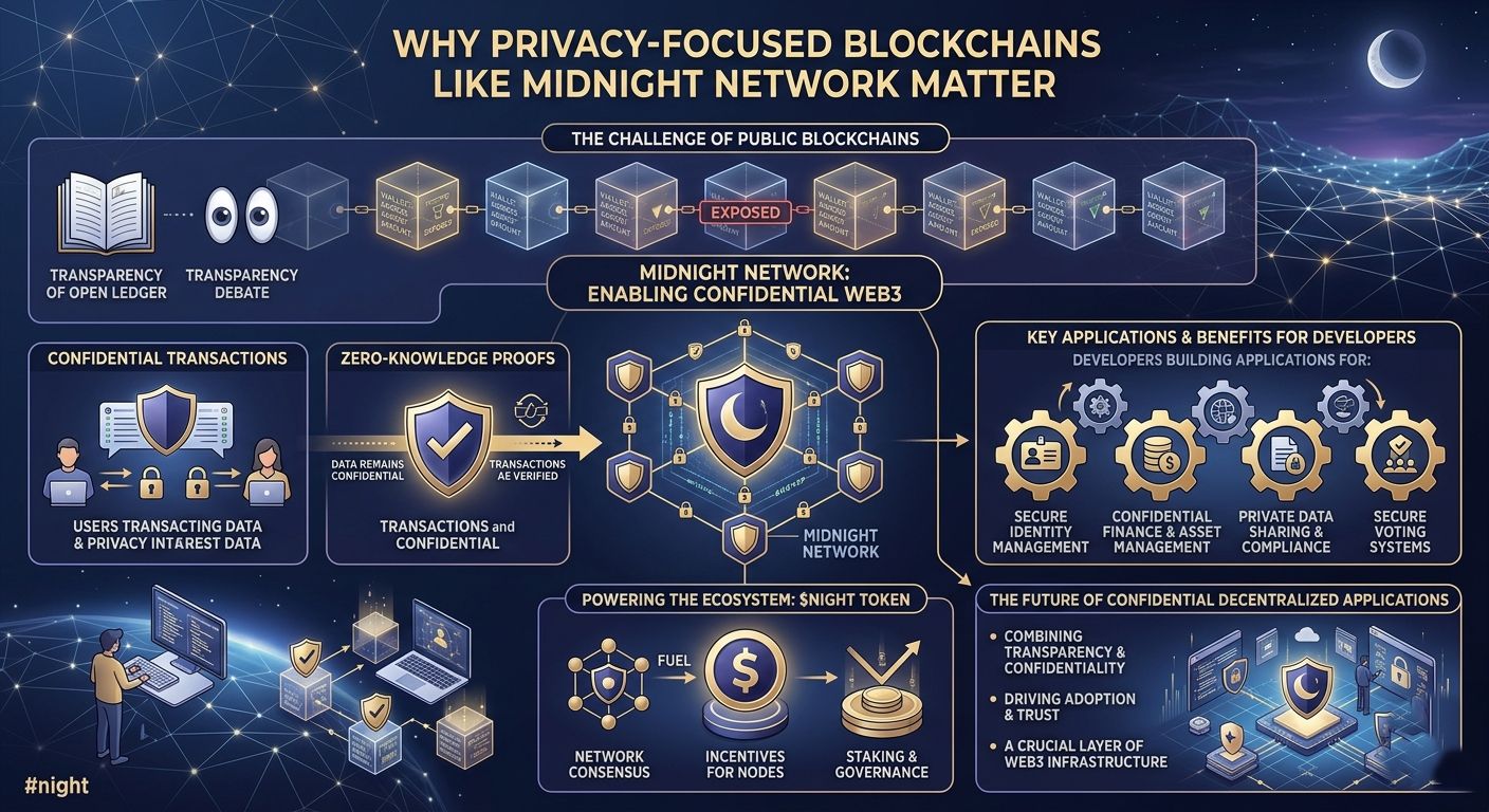 The blockchain space has made incredible progress over the past decade, but privacy remains one of the most debated topics. While public blockchains offer transparency and security, they often expose transaction details that some users and organizations prefer to keep confidential. This is where innovative projects like @MidnightNetwork come into play.