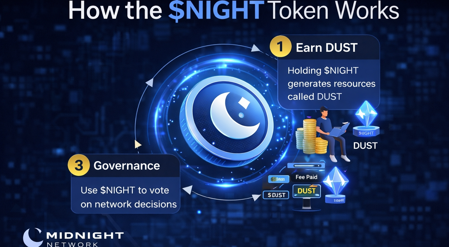 Privacy is becoming a critical factor in blockchain adoption, and @MidnightNetwork is leading the way with innovative technology to secure user data. $NIGHT isn’t just a token—it powers the network by generating DUST when held, which is then used to pay transaction fees efficiently. Users can also participate in governance, using $NIGHT to vote on key network decisions, ensuring a truly decentralized ecosystem. Unlike generic hype coins, Midnight Network provides real utility and measurable benefits for its community. Holding $NIGHT allows users to contribute to a privacy-focused, scalable blockchain while enjoying tangible rewards. With this combination of utility, governance, and security, NIGHT could become a pivotal token in the future of decentralized finance. #night 🌐🔒🚀