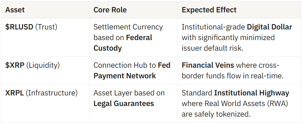 Integration with National Payment Grids: The on-chain liquidity of XRPL will interlock in real-time with Fedwire, the U.S. national payment network.