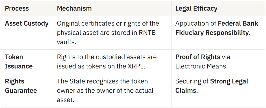 Through this mechanism, actual assets remain safe in federal bank vaults, while the rights to them can be securely traded anywhere in the digital world.