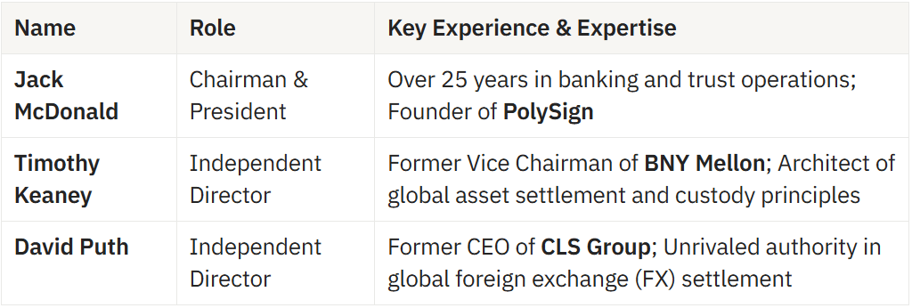 The fact that RNTB is a bank in more than just name is evident in its board composition. To transcend its image as a tech company and secure financial trust, Ripple has positioned heavyweights from traditional finance—those who designed global payment infrastructures—at the forefront.