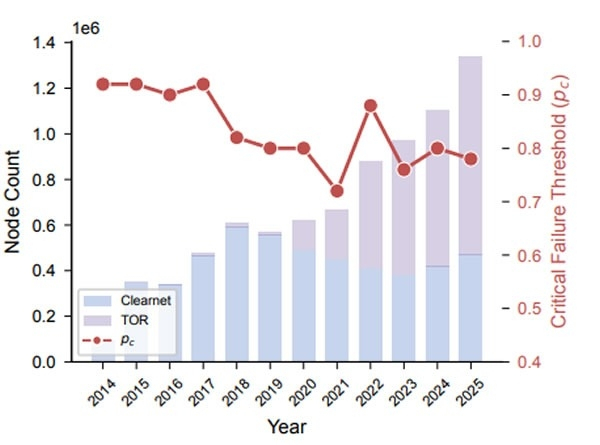 “目前的中继地理结构下,Tor的应用提升了网络韧性,而非带来潜在脆弱性。”研究称。