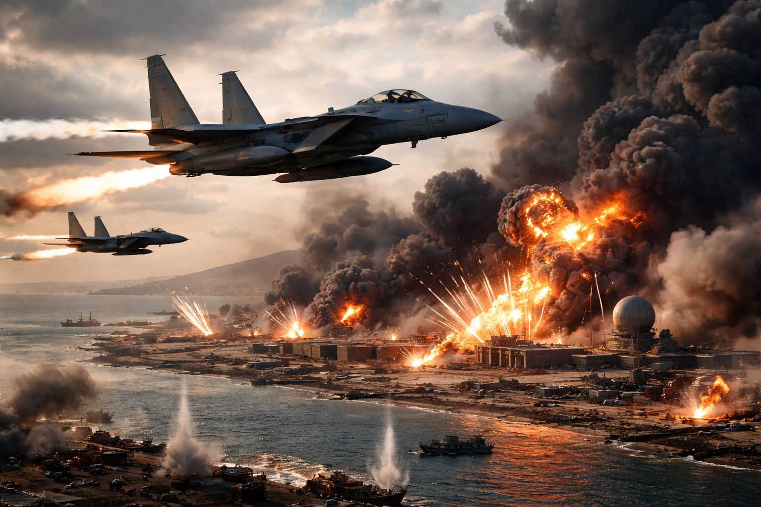 Ataques aéreos dos EUA continuam: caças americanos bombardearam instalações militares iranianas perto da cidade de Chabahar em 16 de março, ampliando a ofensiva militar.