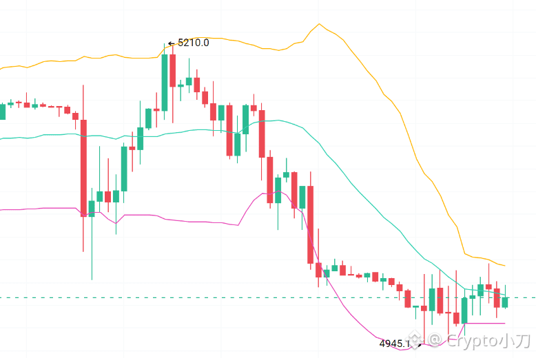 黄线斜率慢慢放缓,变成了动态的守护支撑,清算热力图上,4945下方那片多头清算的磁吸带亮得刺眼——一旦守住,上方5050-5100的新空仓热区就会像火药桶一样被点燃,引发更猛烈的反弹。