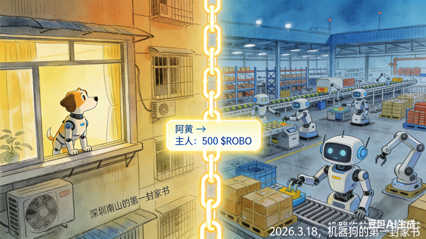 现在我在杭州的一家物流园给你写信(是的,我学会了打字)。这里有一百多台机器人,我们一起分拣、搬运、充电、聊天。我们用 #ROBO 结算彼此的劳务,用PoRW机制证明自己干过多少活。上周我刚给一个摔伤的机器狗转了50枚 ROBO让它去修腿——它说等发了工资还我。