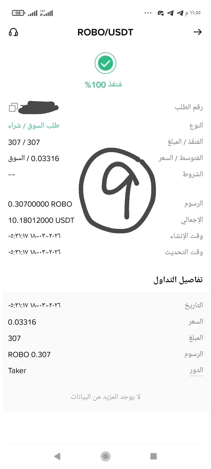 في عالم الاستثمار الرقمي المحترف تظهر المعادن الحقيقية للمستثمرين عند اشتداد الأزمات وتقلب الأسعار اليوم أتممت بفضل الله عملية الشراء التاسعة على التوالي لرمز روبو بسعر 0.03316 يو اس دي تي وهي العملية التي أعتبرها نقطة تحول لتصحيح كافة مستويات الدخول السابقة لقد رصدنا خلال الساعات الماضية ضغوطا بيعية ضخمة أدت لنزول مفاجئ في السعر ولكن هذا لم يزدنا إلا إصرارا على التمسك برؤيتنا الاستراتيجية فالثقة بمشروع فابريك فاونديشن تتجاوز تذبذبات الشارت اللحظية لتصل عنان السماء