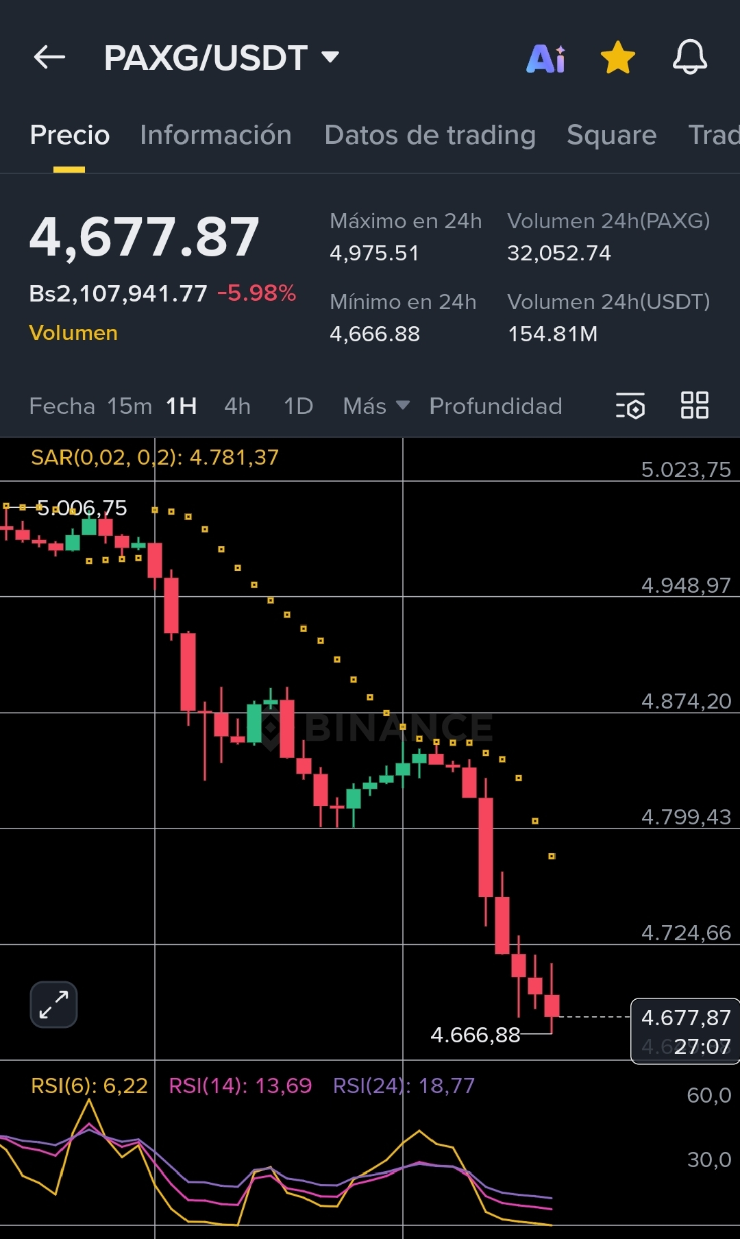 El refugio seguro por excelencia está bajo fuego. PAXG acaba de registrar una caída vertical del -6.10%, situándose en los $4,677.