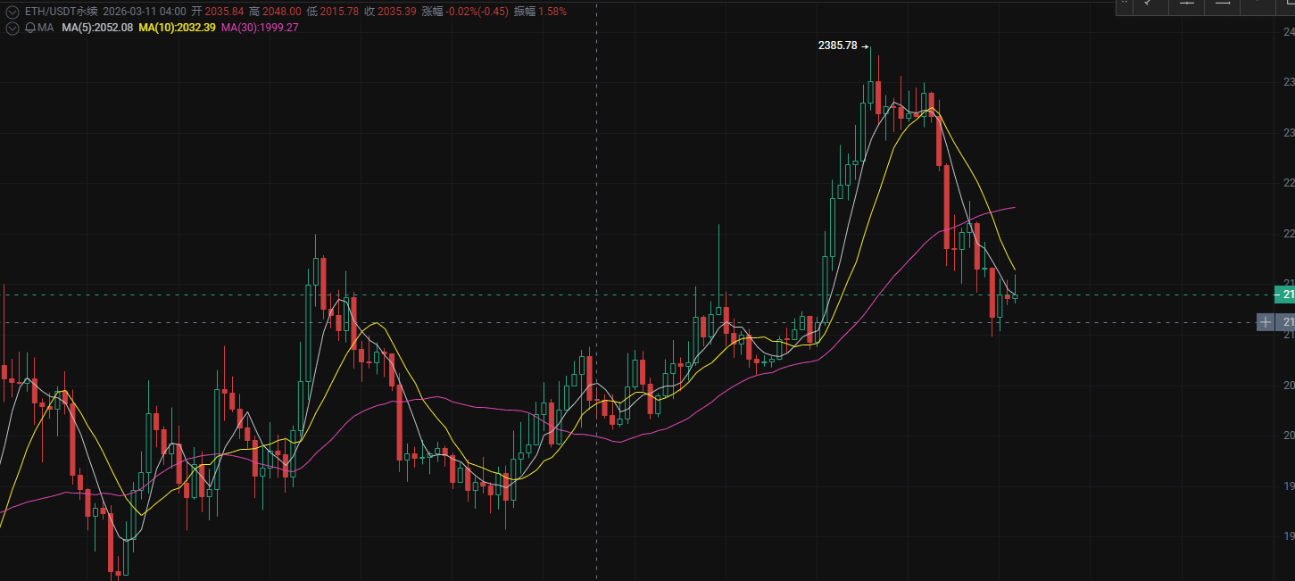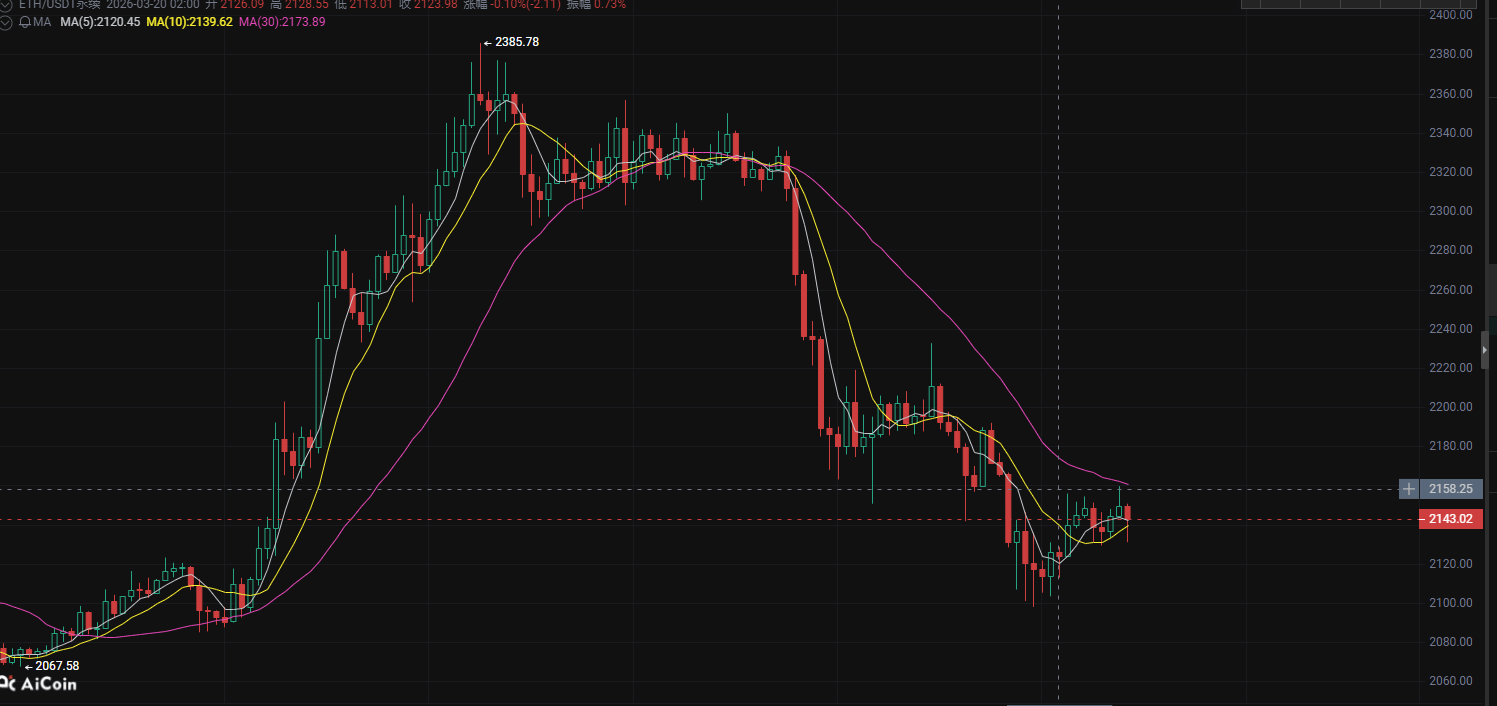 经历前期从 2300+ 回落到2100附近 的快速洗盘后,ETH目前在 2135一线企稳震荡。这种走势非常关键——往往是 主力完成洗盘后准备再次拉升的前兆。
