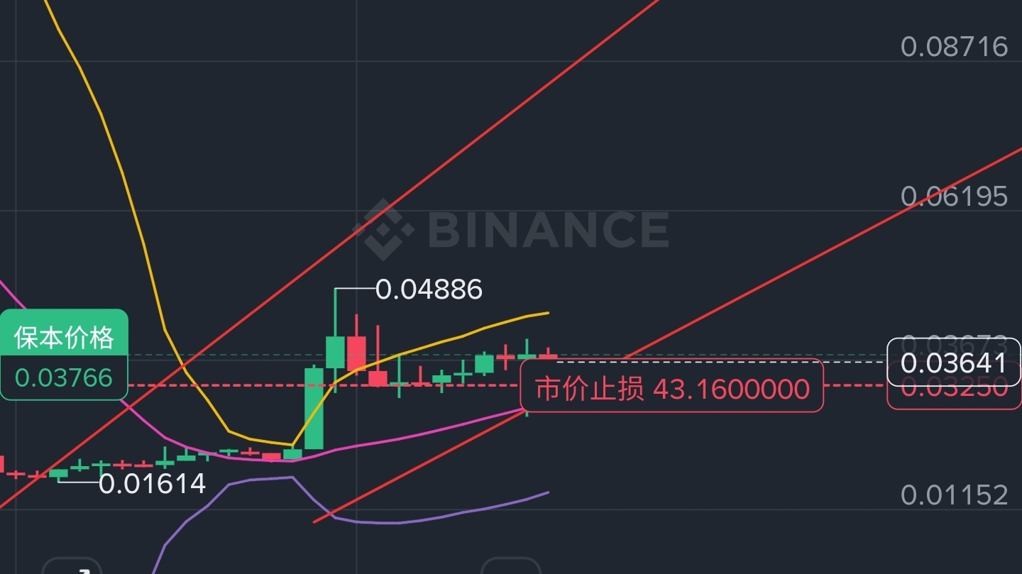 2. “流动性清扫”后的企稳:别看这几天有回调,仔细观察日线的影线。之前的快速下探打到了 0.036 区域,但买盘瞬间就把价格推了回去,收出了长长的下影线 。这种走势,典型的目的是清扫杠杆和洗掉不坚定的“弱手”。洗完盘,车轻了,才好拉盘。