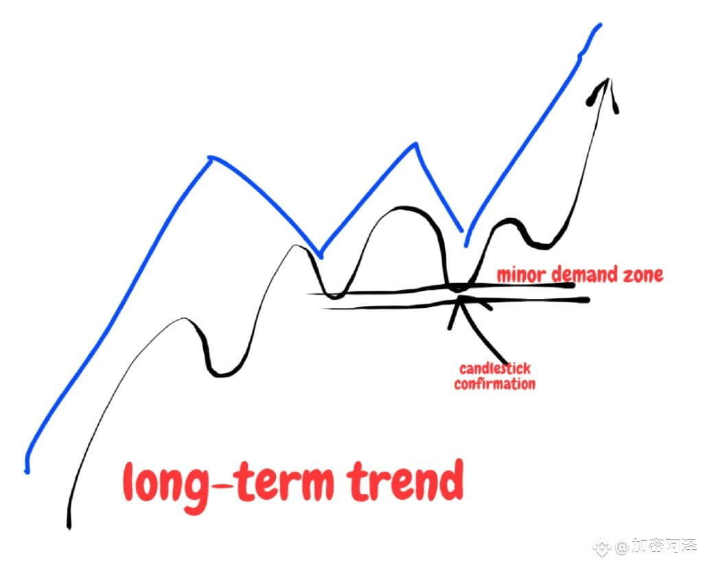 一旦发现一个次要需求区,我们可以在图表上进行标记并潜伏在价格附近。