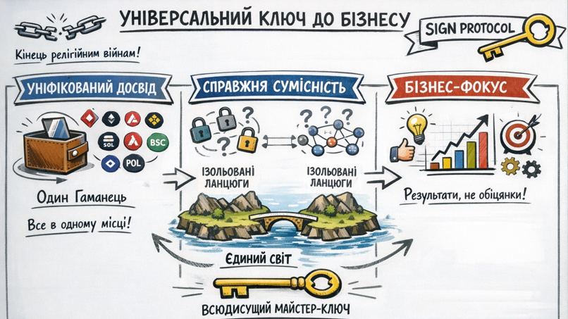 Забудь про жонглювання десятьма гаманцями. Один інструмент працює скрізь.Іііііі….нарешті у нас є інструменти, щоб працювати в «єдиному світі», а не в ізольованих в'язницях. Перестаньте говорити про консенсусні механізми, почніть доставляти рішення.