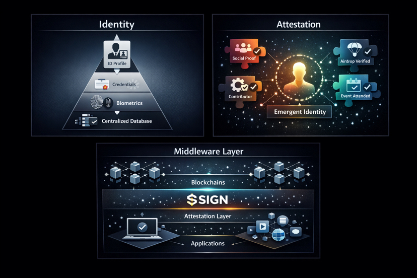 Trong khi phần lớn Web3 cố gắng định nghĩa danh tính từ trên xuống, SIGN đi từ dưới lên. Bắt đầu bằng những tương tác nhỏ, những lần ký, những lần xác nhận, rồi để danh tính tự hình thành như một hệ quả.