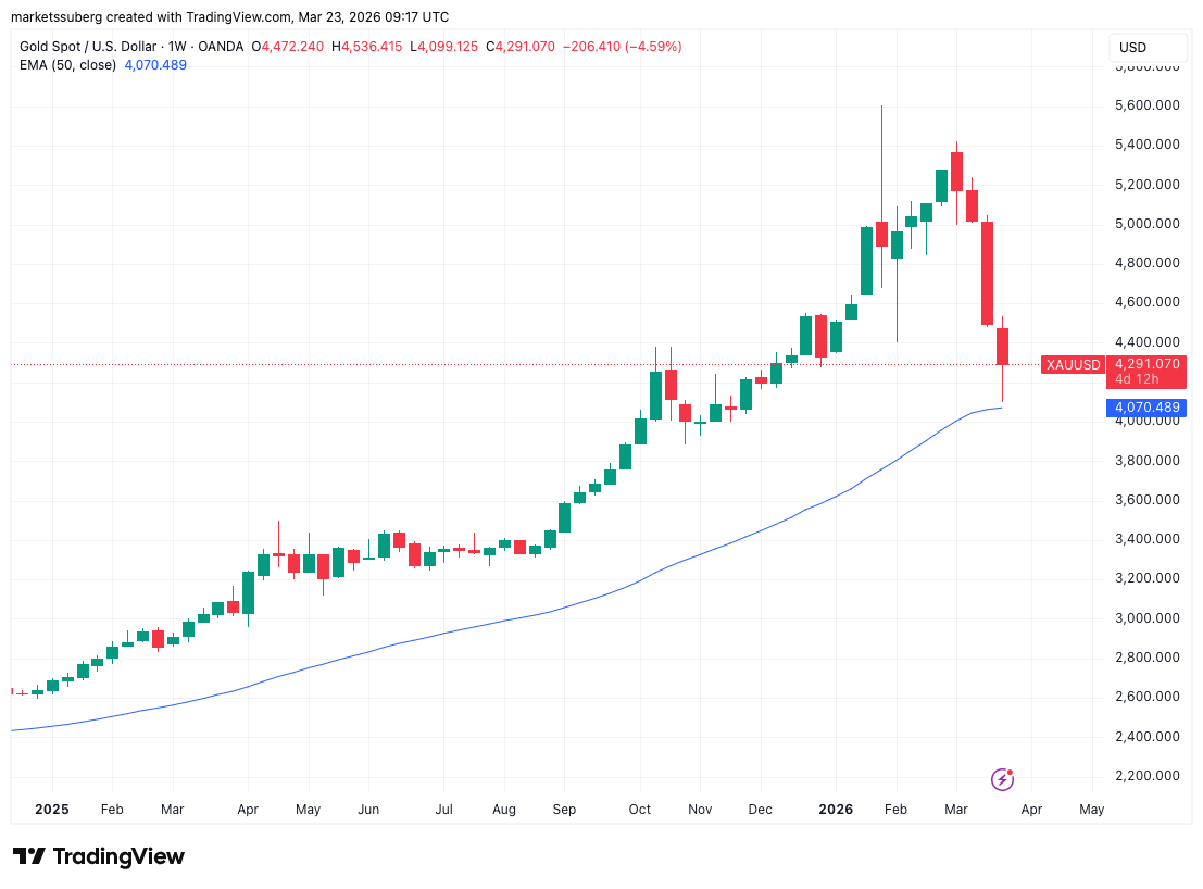 XAU/USD周线图,含50EMA。来源:Cointelegraph/TradingView