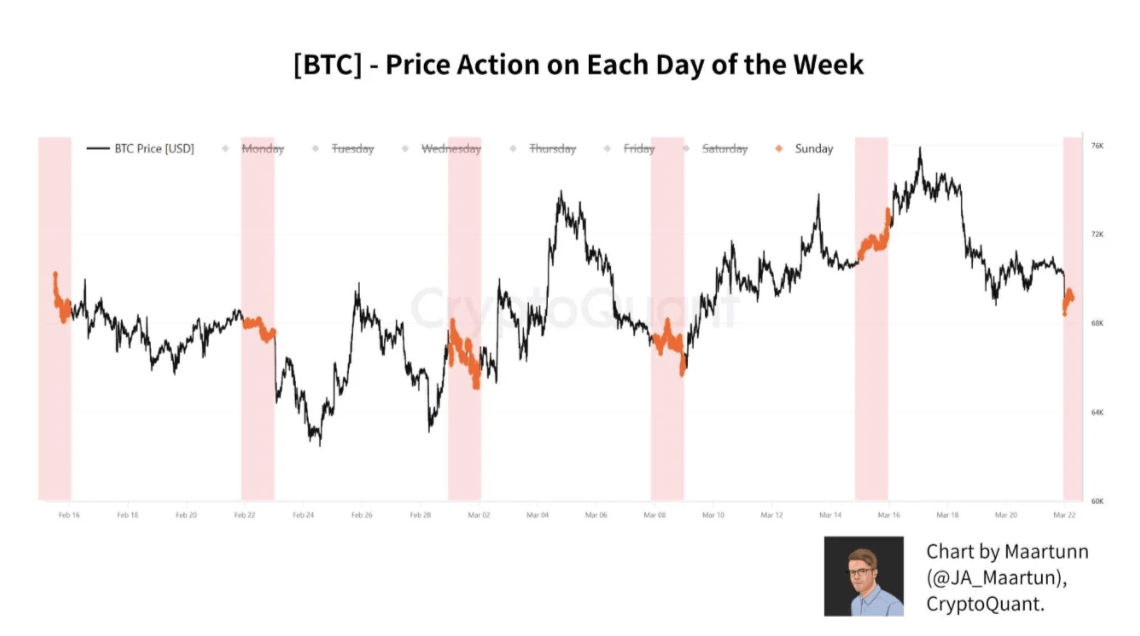 另一方面,链上分析平台CryptoQuant评论了最新价格变动,暗示周末波动属于常态。