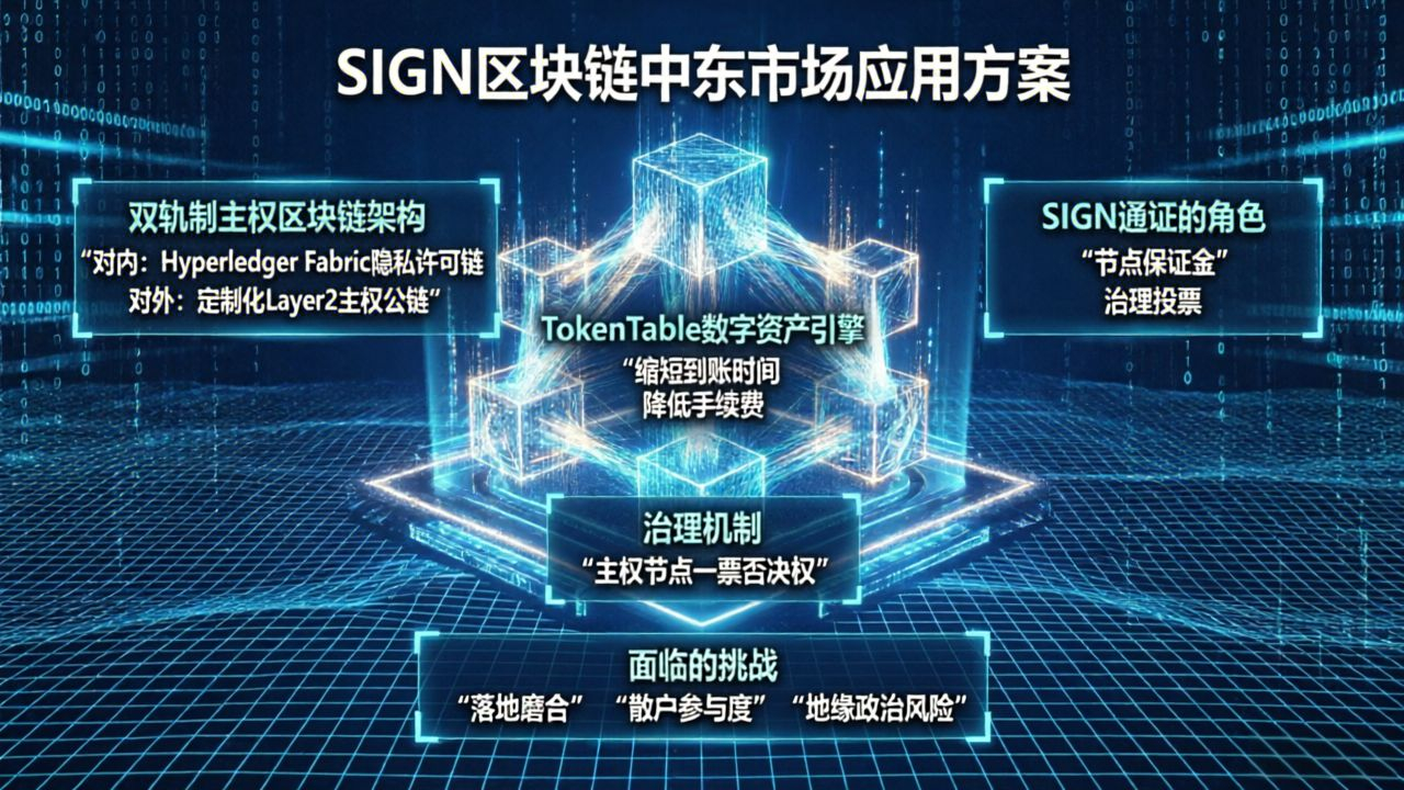 我研究白皮书第九章的双轨制主权区块链架构时,发现它和其他公链的设计完全不同,不是单纯追求去中心化或者交易速度,而是把“主权可控”放在了第一位,这也是我觉得它能和阿布扎比区块链中心达成合作的核心原因。这套架构对内是基于Hyperledger Fabric的隐私许可链,合作国能完全掌控本国的金融数据、政务信息,甚至能自主调整链上的验证规则,这对中东国家来说太重要了,毕竟这片区域对金融主权的敏感度远高于其他地方,谁都不想把核心数据交给外部系统;对外则是定制化的Layer2主权公链,预留了和全球数字金融体系的接口,却又不会被单一平台绑定,能实现跨境贸易、资金流转的互联互通。而SIGN作为这套架构的唯一通证,不仅是节点运维、协议使用的燃料,还是治理投票的凭证,我查了目前的合作细则,阿布扎比在推进公共部门数字记录管理时,所有链上操作都需要质押SIGN作为节点保证金,这让$SIGN的价值和中东的基建落地深度绑定,不是靠二级市场炒作的空气币,这一点是很多加密代币比不了的。