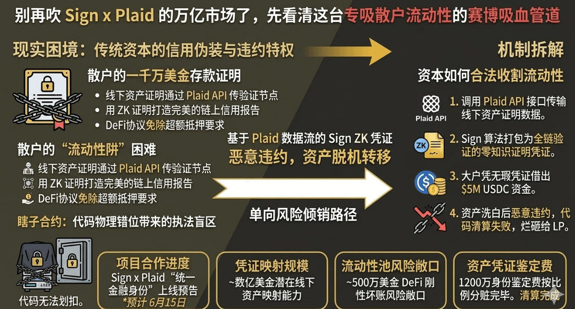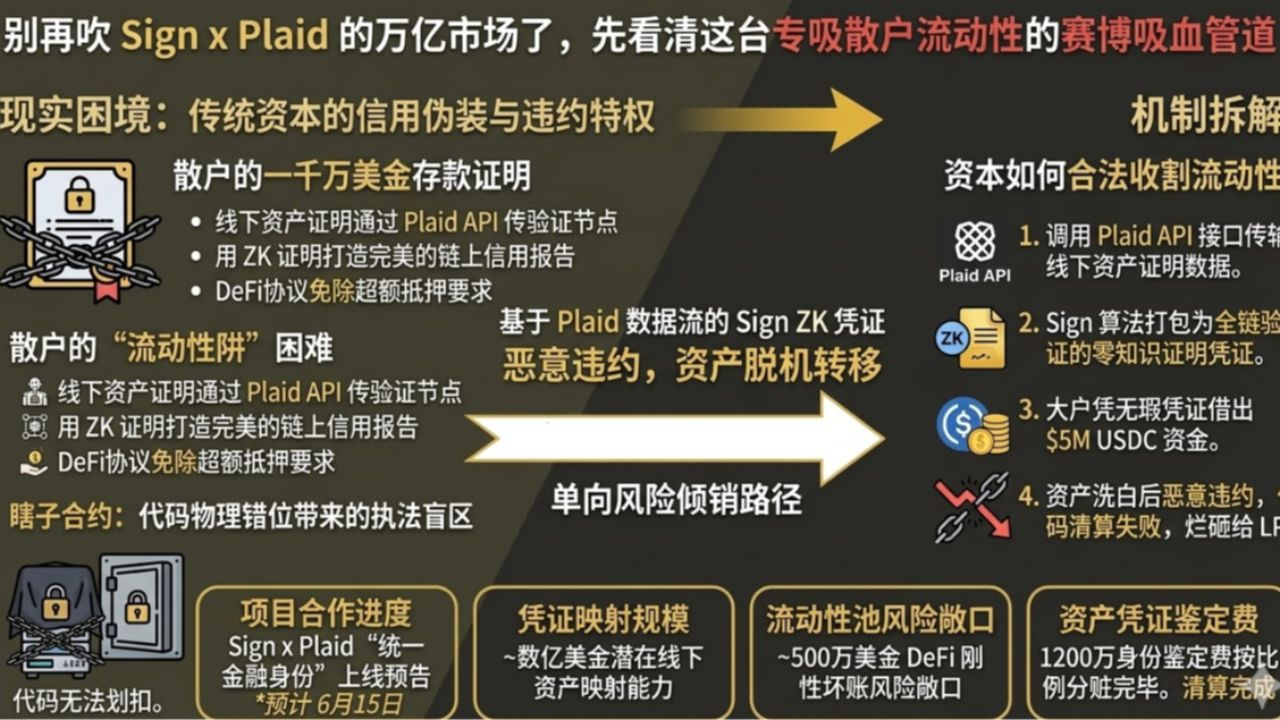 Sign协议与美国金融数据巨头Plaid刚刚敲定的这套“统一金融身份”系统,正在极其合法地为传统信贷资本敞开一扇直接吸干去中心化资金池的大门。