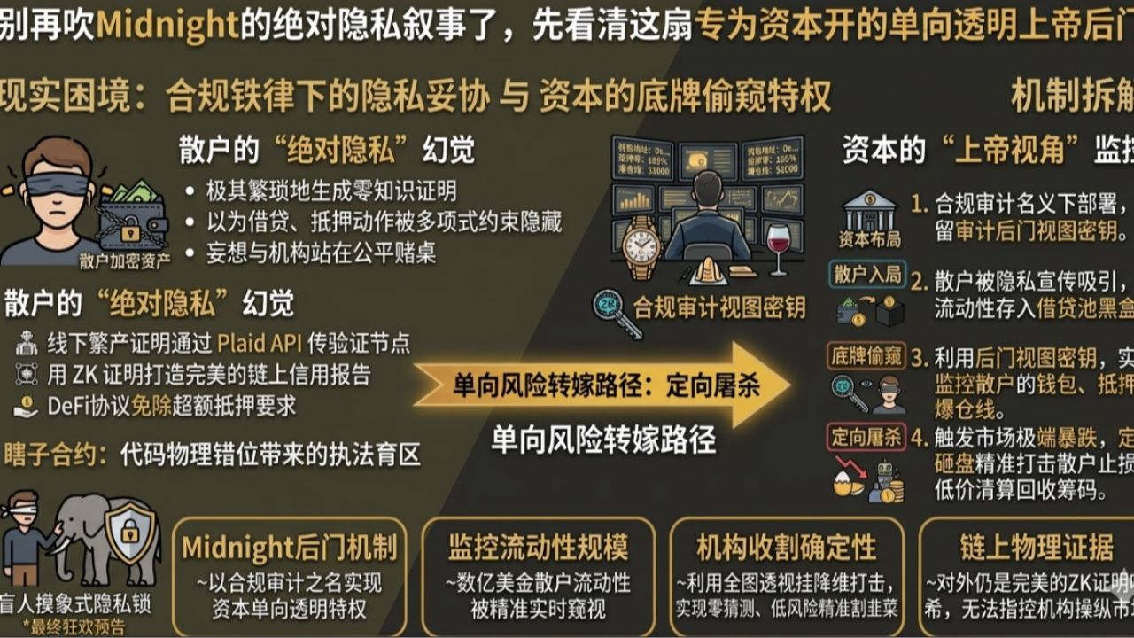 这套带后门的零知识证明网络,就是一台最完美、最不留痕迹的合规绞肉机。@MidnightNetwork #night $NIGHT