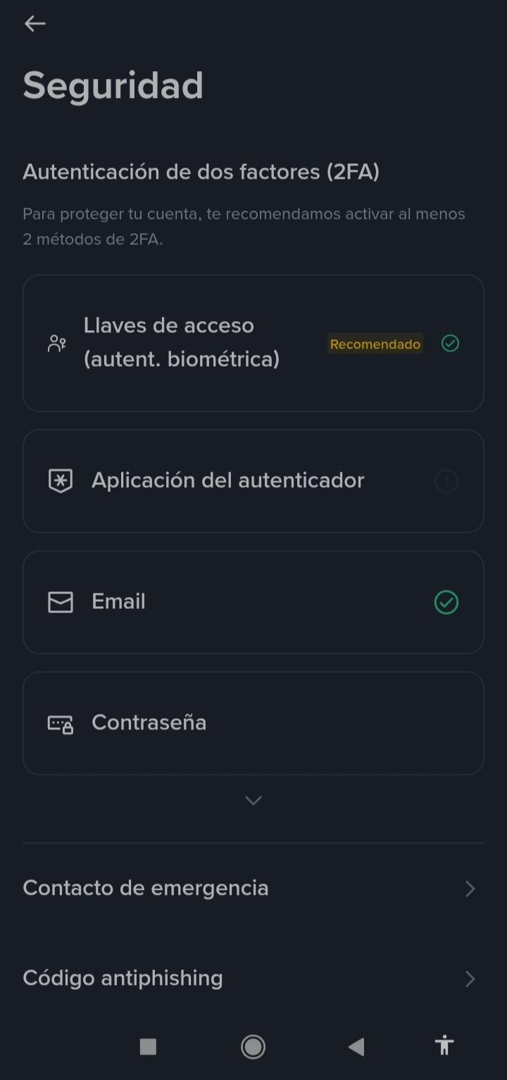 Binance/Google Authenticator: Genera códigos temporales cada 30 segundos en tu celular. Es mucho más seguro porque no depende de la red telefónica.