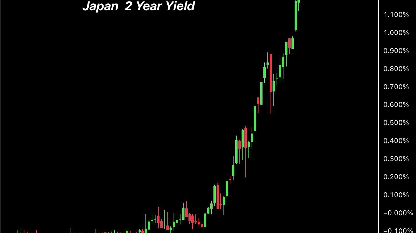 BREAKING: 🇯🇵 Japan's 2-year yield climbs to 1.315%, marking its highest level in nearly three decades.