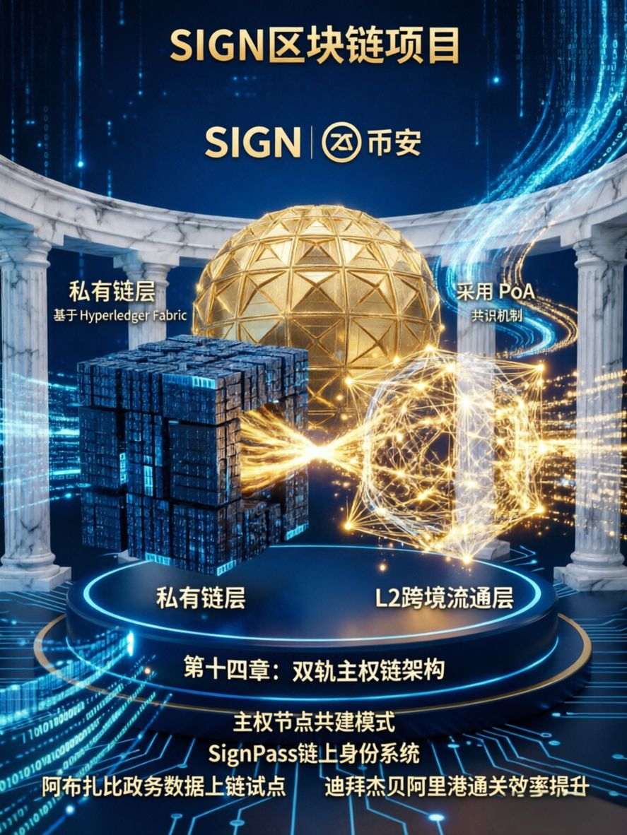 白皮书第十四章中SIGN提出的双轨主权链架构,是我认为其能在中东落地的核心底层逻辑,这套架构并非简单的公链+私链组合,而是针对中东地缘特征做了定制化改造。私有链层基于Hyperledger Fabric搭建,直连各国央行、主权基金及核心政务机构,承接CBDC跨境结算、本土资产链上确权、基建项目资金监管等核心业务,所有数据节点由当地主权机构掌控,完全符合中东各国对数据主权的核心诉求。L2跨境流通层则做了轻量化定制,采用PoA共识机制提升交易效率,同时搭载链上合规审计模块,能根据不同国家的监管细则自动调整数据流转权限,实现跨境数据与资产的合规互通。我在阿布扎比区块链中心与当地技术负责人交流时发现,这套架构恰好解决了他们此前对接海外数字方案时的核心顾虑,也是目前唯一能在 主权自主和跨境互通 之间找到平衡的技术方案,目前该架构已在阿布扎比完成政务数据上链试点,实现了当地工商登记、跨境贸易备案的链上闭环,处理效率较传统系统提升60%,且数据留存完全由阿布扎比经济发展局掌控。@SignOfficial