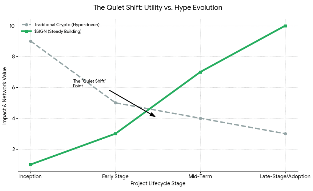 I believe that the most significant change of mindset is the understanding that not all significant projects seem so at the beginning of their existence in the crypto industry. As a matter of fact the most important ones tend to seem uninspiring at first. No noise. No constant hype. Just steady building. That was precisely the impression I began to get with Sign.