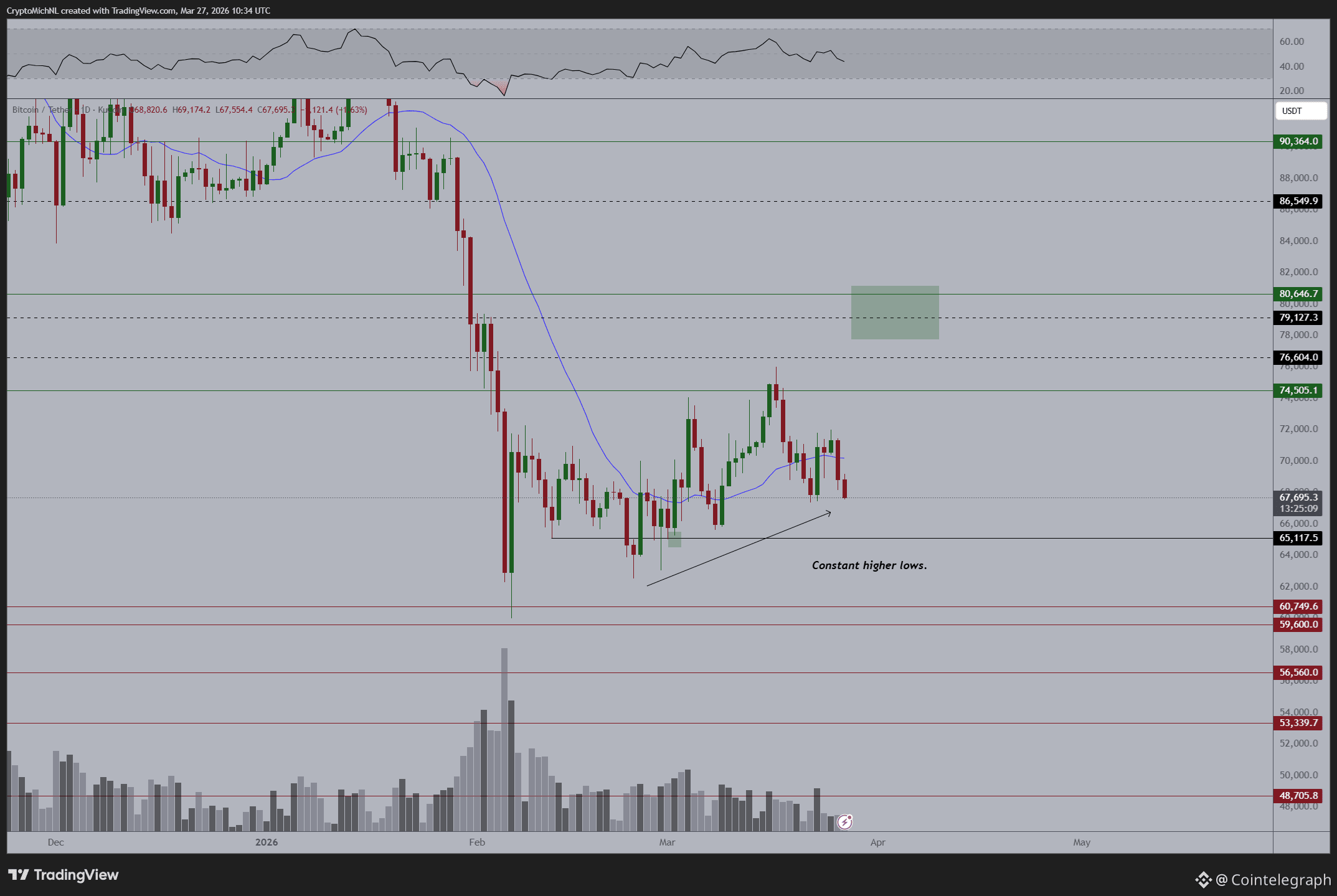 BTC/USDT one-day chart. Source: Michaël Van de Poppe/X