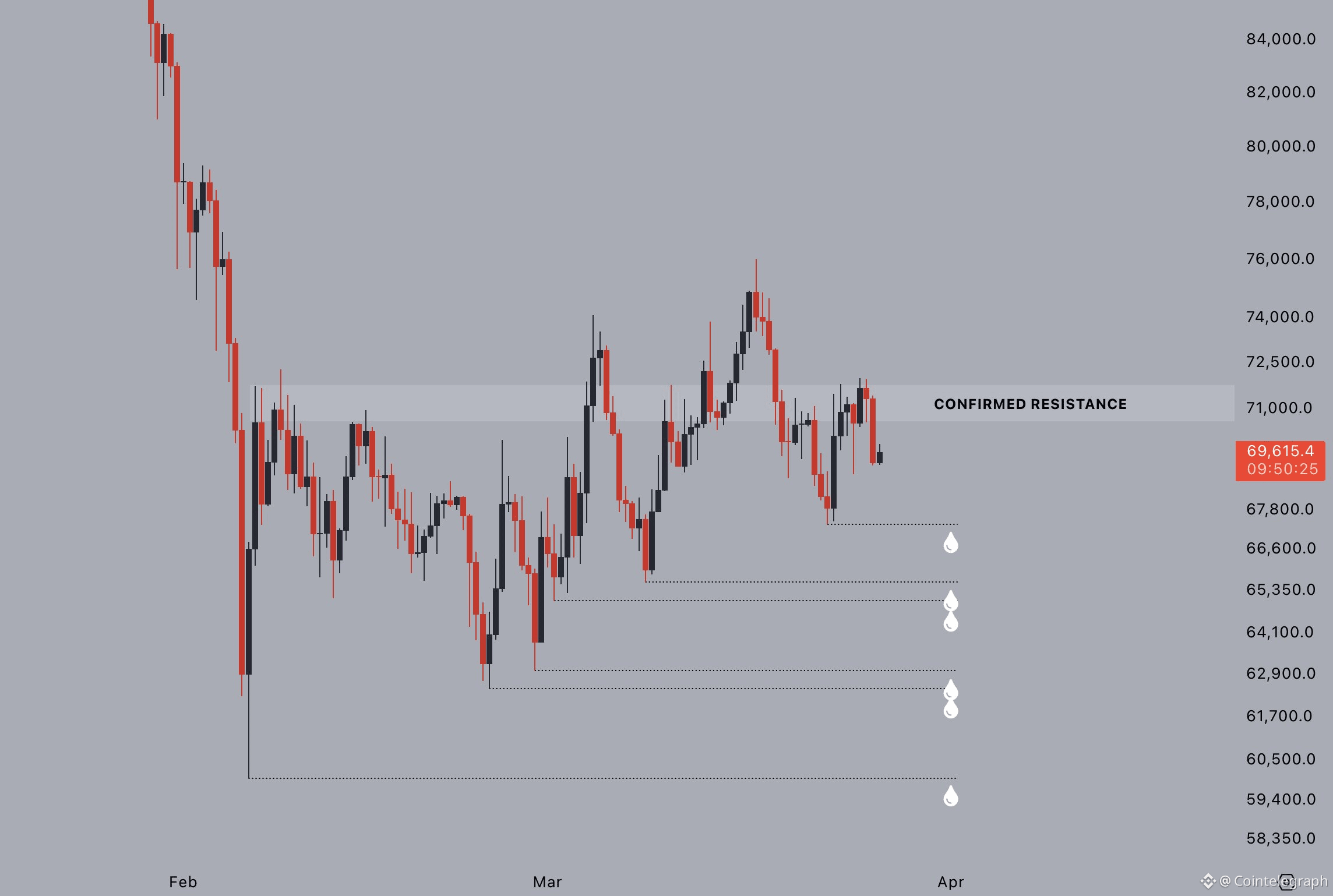 “$70-71k confirmed as resistance again,” trader Jelle wrote in analysis on X the day prior.