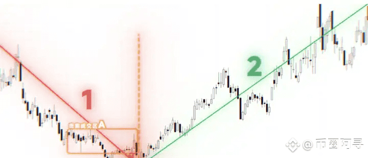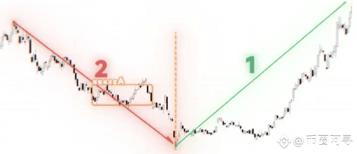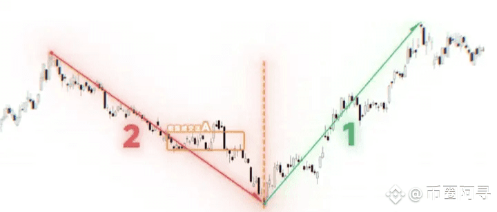 比如我们看这只A股,右侧这段2号的上涨趋势发起之前,左侧的这段1号下跌趋势有什么特点?