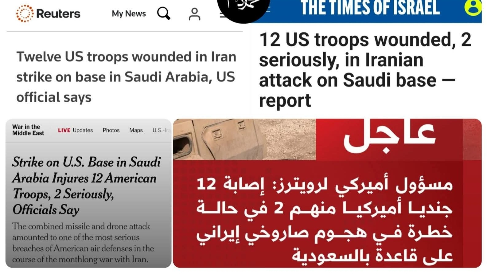 🔴 امبارح 12 جندي أمريكي اتصابوا في السعودية وبعضهم في حالات خطرة وموت سريري، والإعلام العربي عامل من بنها!