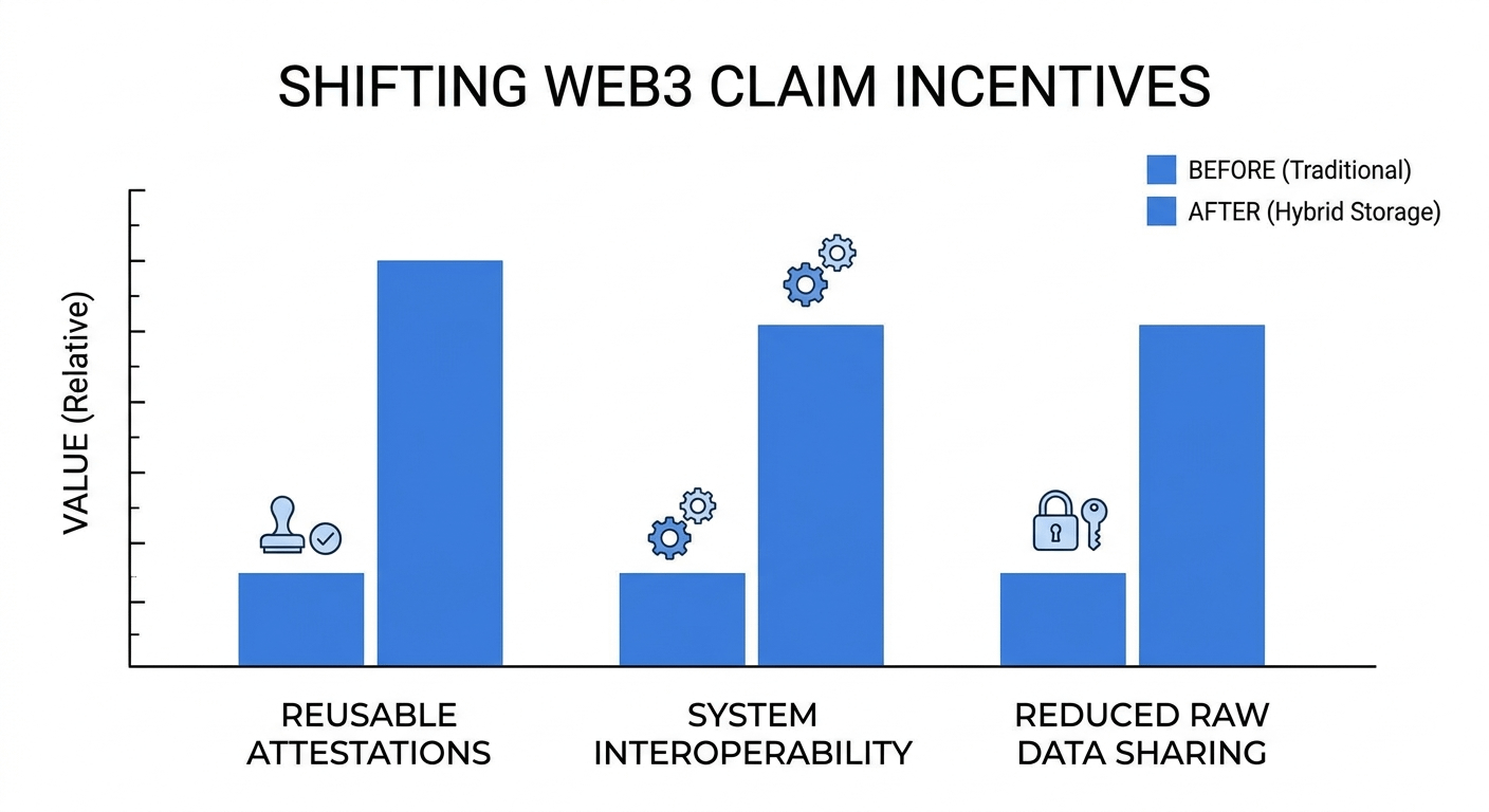 Another detail I found important is composability. If attestations become standardized, they are no longer locked inside one application’s logic. They can be interpreted elsewhere, layered into other systems, or combined with different proofs. That makes the hybrid structure more than just storage design it becomes a potential coordination layer for identity and reputation across Web3.