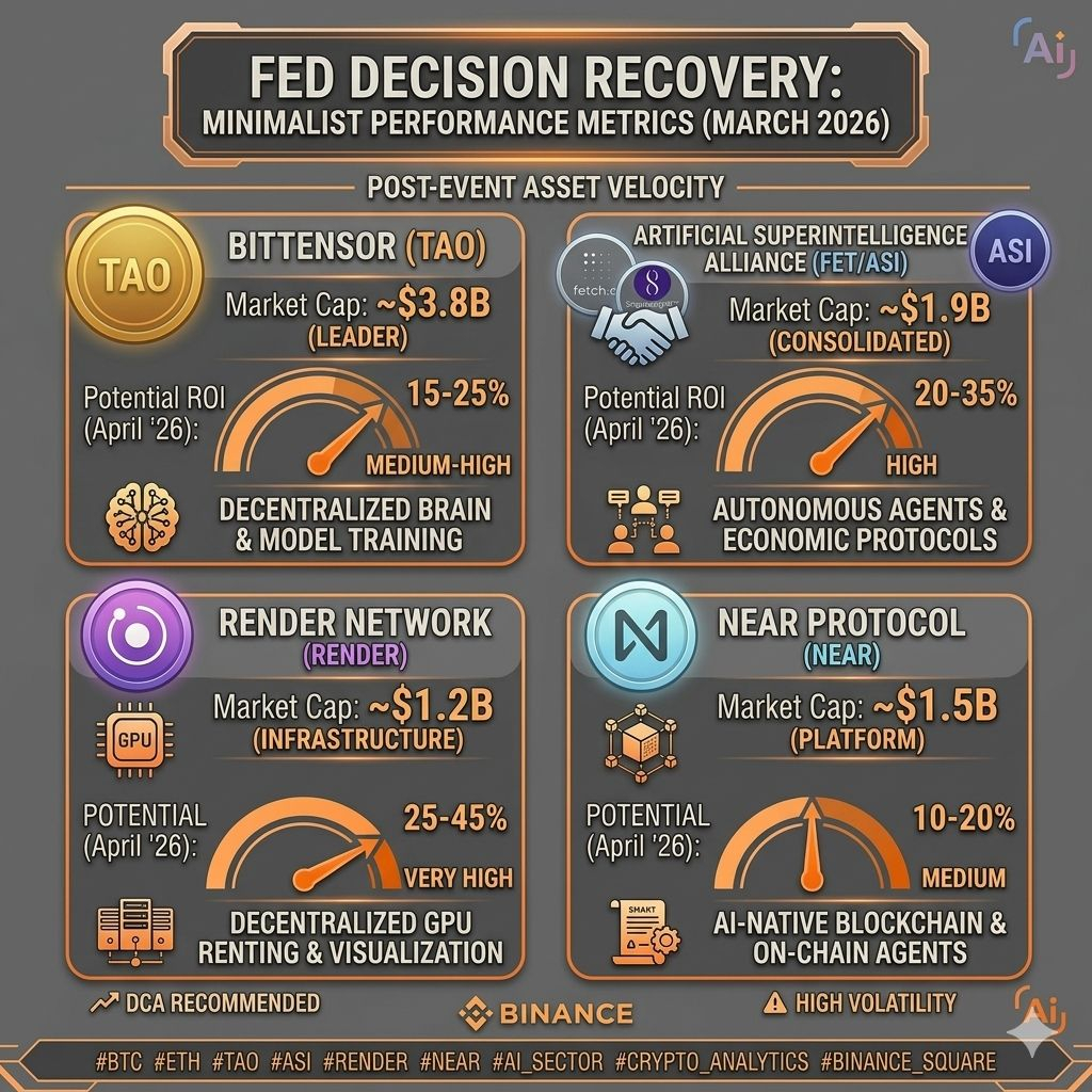 Як бачимо на інфографіці, #render та #asi демонструють найбільший потенціал для агресивного росту в короткостроковій перспективі (квітень), тоді як #tao залишається найбільш стабільним інфраструктурним активом.