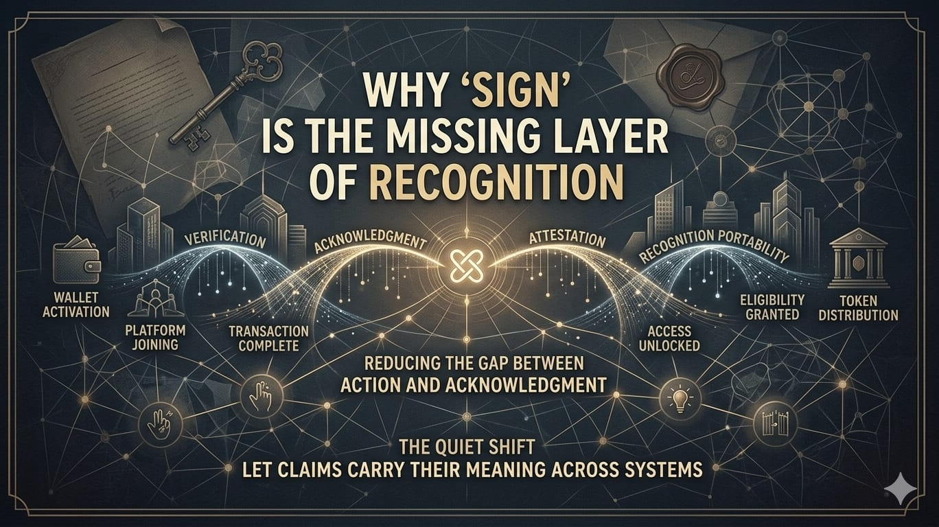 Because most of the friction on the internet does not come from a lack of activity or participation. It comes from the weak connection between activity and acknowledgment. Things happen, records exist, ownership is visible, participation is clear—but whether those things are recognized elsewhere is still inconsistent. And that is why SIGN, at least from this angle, does not feel like a loud promise or just another product. It feels like an attempt to make recognition less trapped. To let claims carry their meaning as they move. To reduce dependence on private lists, informal trust, and repeated manual checks.