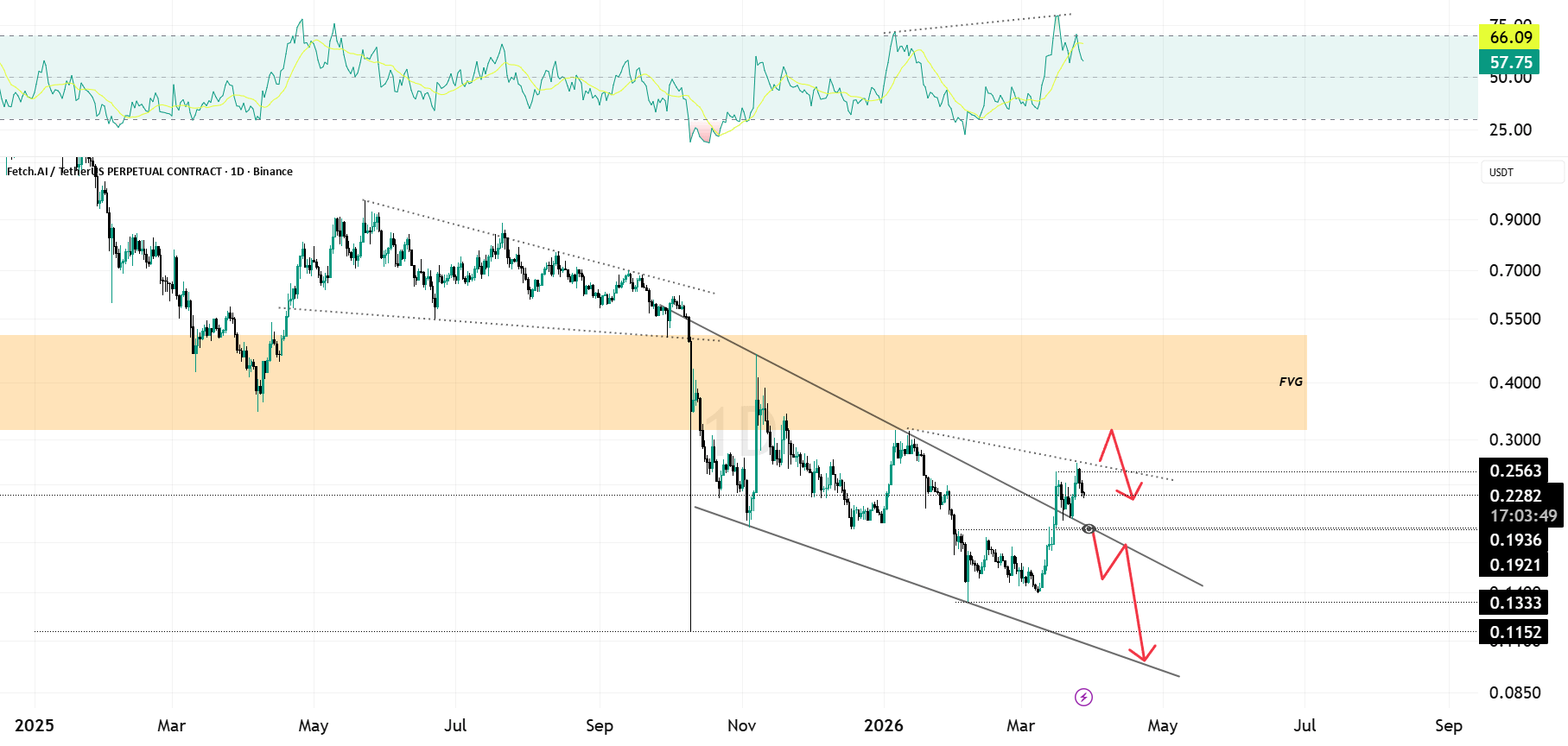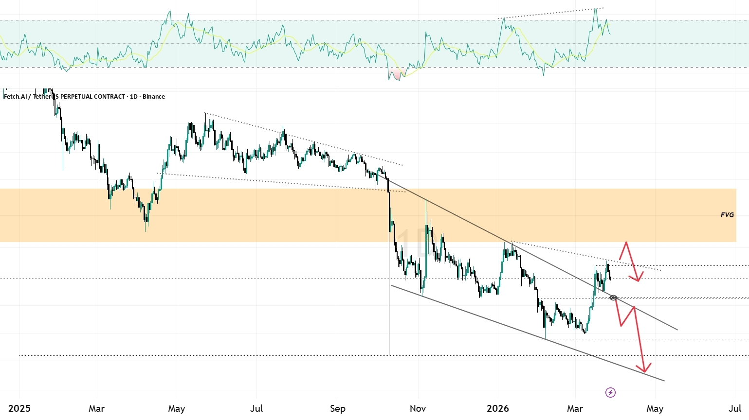 انفصل FET عن القناة الساقطة، لكن الحركة تواجه الآن رفضًا واضحًا عند مقاومة رئيسية وقرب منطقة FVG.