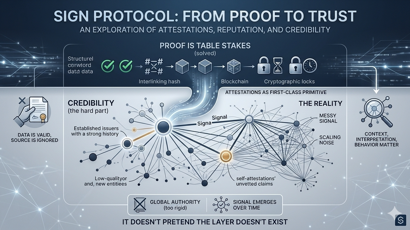 What matters is how proof gets interpreted, who stands behind it, and how that reputation evolves over time. Sign Protocol doesn’t try to shortcut that process. It gives you the raw material and leaves the hard part exposed
