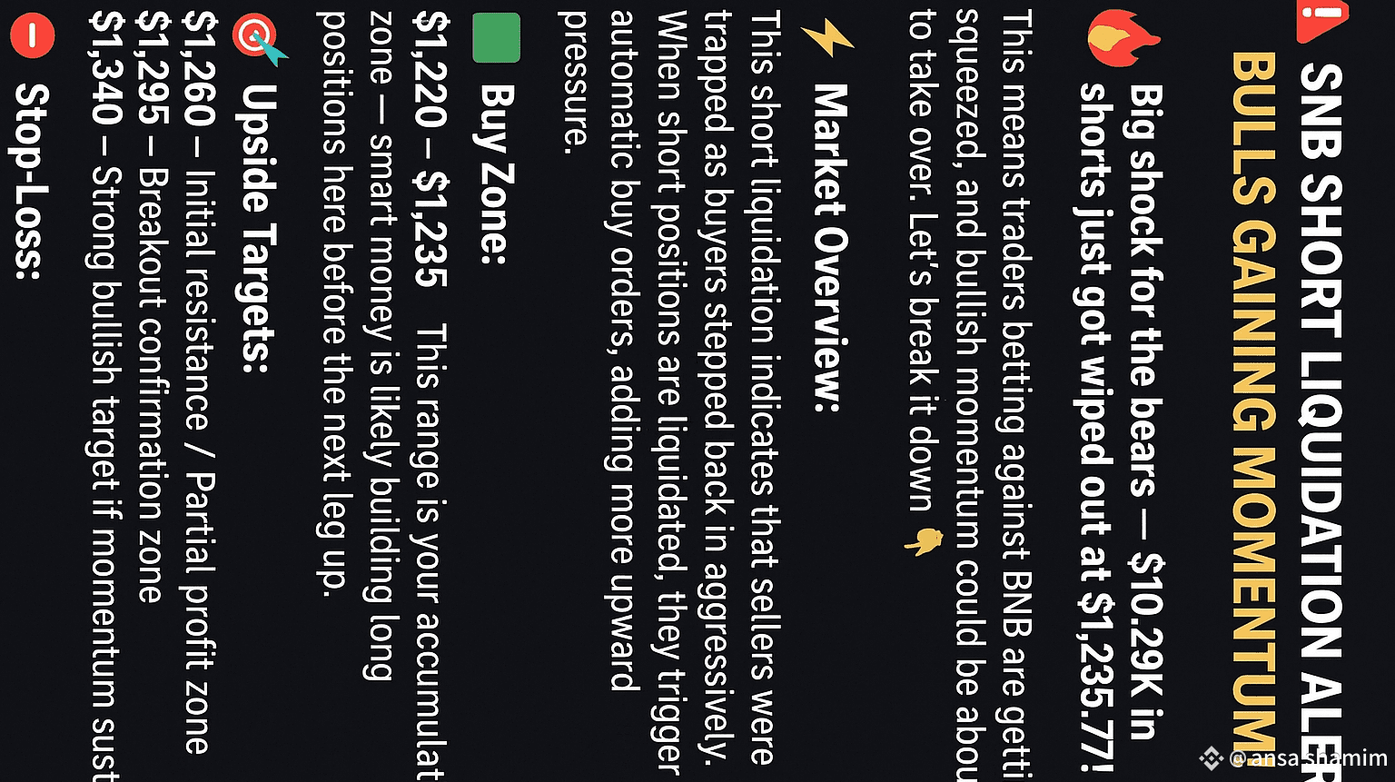 As long as BNB holds above $1,230, expect a bullish breakout pattern. Liquidity is clearly shifting from shorts to longs — if volume spikes, it could fuel a strong recovery rally.