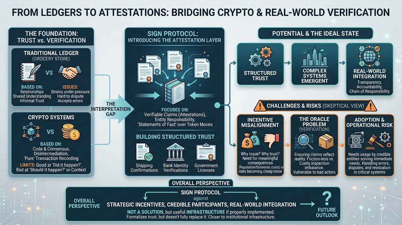If I compare this to the grocery store ledger, SIGN feels like an attempt to formalize trust without fully replacing it. It’s as if the shopkeeper upgraded from a notebook to a digital system that records every entry immutably—but still relies on the same people to write accurate numbers in the first place. The system becomes more transparent, but not necessarily more reliable.