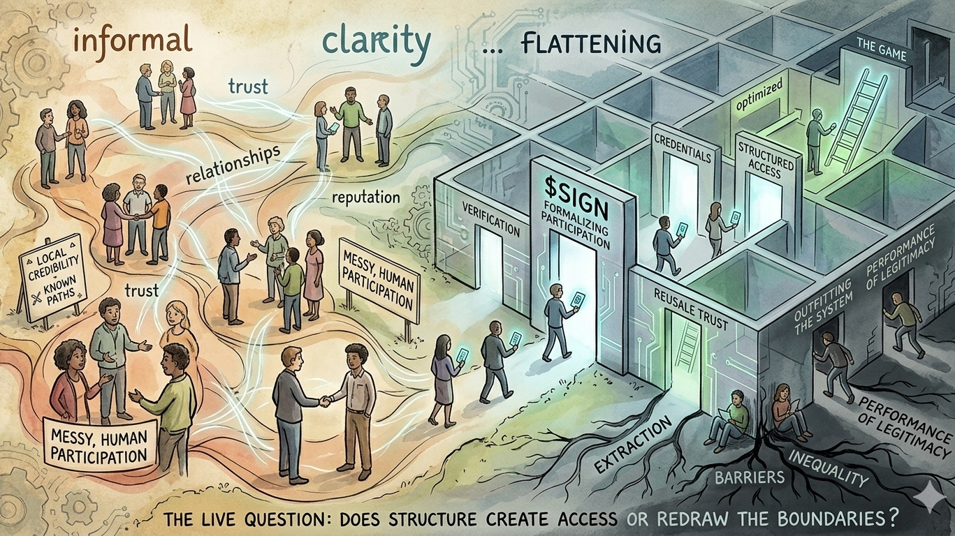 In real life, participation is messy. It is shaped by timing, trust, relationships, reputation, and sometimes things people cannot even fully explain. It is not always about whether you technically qualify. Sometimes it is about whether the system sees you. Sometimes it is about whether someone trusts you. Sometimes it is about whether you are known, vouched for, or standing close enough to the right network at the right moment.