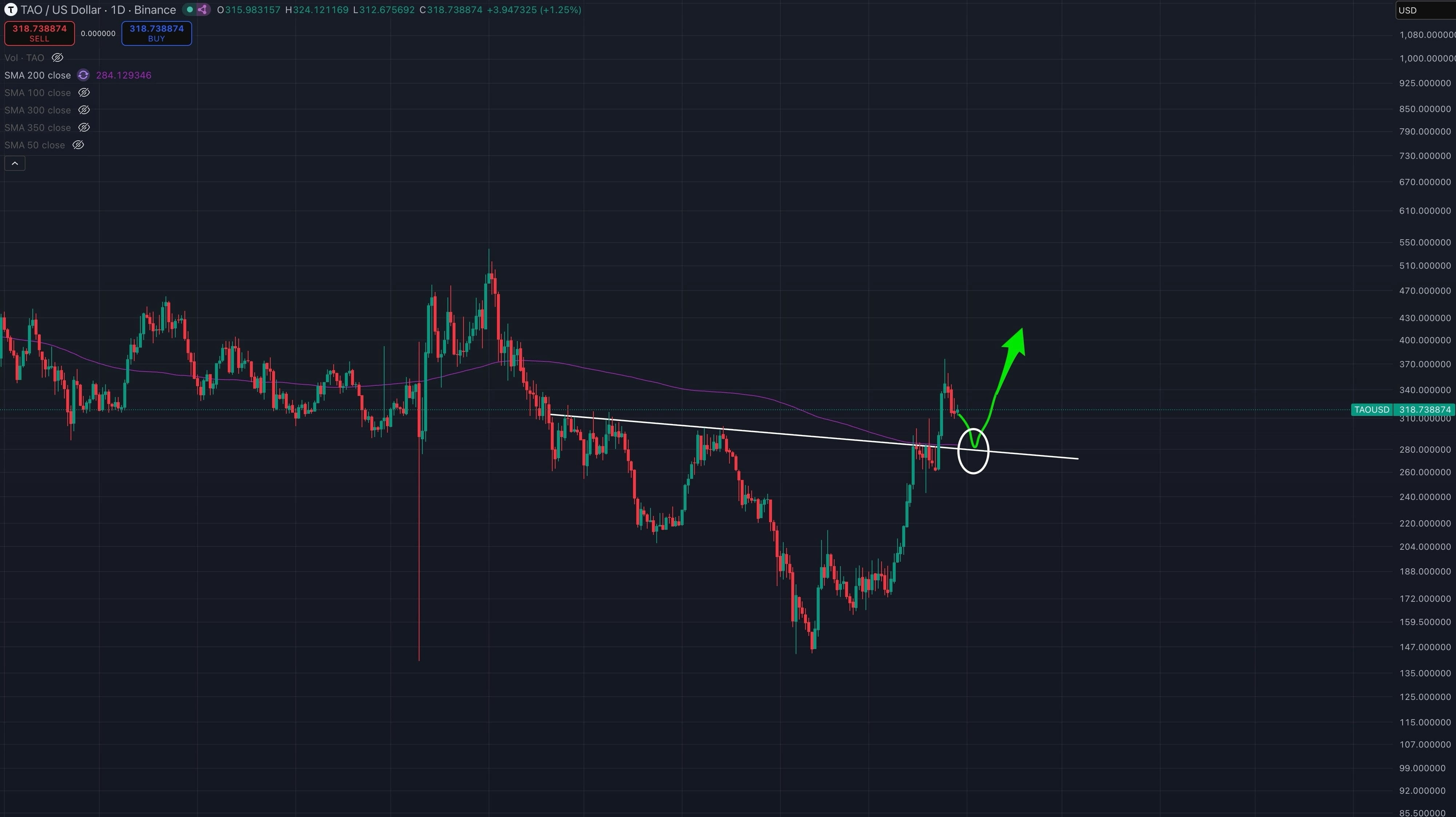 عملة TAO تعيد صياغة اتجاهها العام من الهبوط إلى الصعود. الحركة الحالية تشير إلى أن المشترين قد سيطروا على الزمام. السهم الأخضر في المخطط ليس مجرد أمنية، بل هو انعكاس لنمط فني تاريخي غالباً ما يتبعه صعود حاد إذا نجح الثبات فوق مستوى الـ 280$.