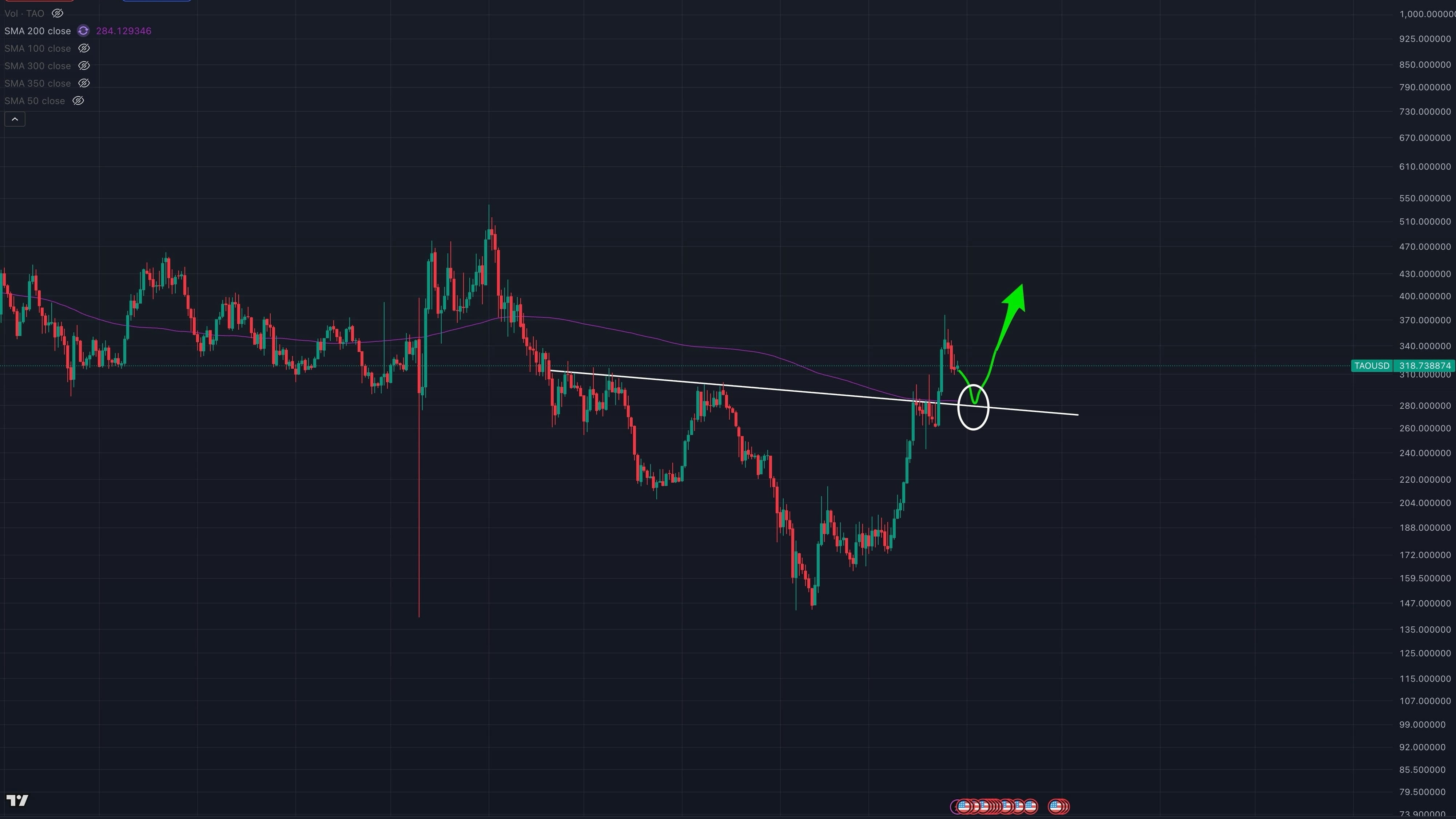 بعد فترة طويلة من التذبذب، يبدو أن عملة TAO تستعد لرحلة صعودية جديدة. الرسم البياني اليومي (1D) يعطينا مؤشرات لا يمكن تجاهلها: