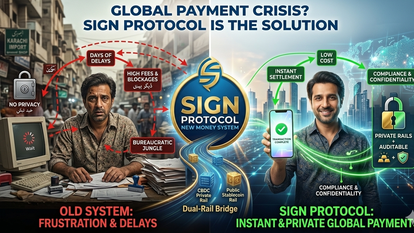 Ali runs an import business, and his biggest headache isn't sales—it's moving money. He faces a constant barrage of delayed transactions, high bank fees, and the fear of being blocked. On top of that, there is the privacy dilemma: he wants his financial life to be confidential, yet regulators demand more documentation every day. This struggle between speed, privacy, and regulation is exactly where Sign Protocol’s New Money System steps in.