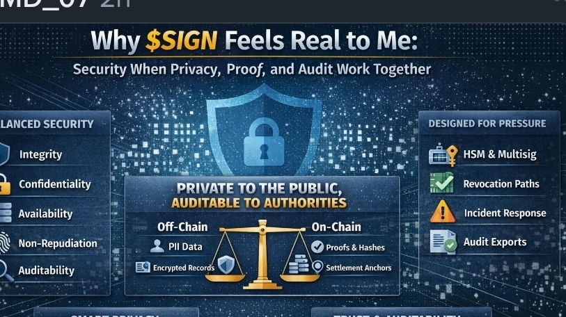 When I look at SIGN’s principle of being “private to the public, auditable to lawful authorities,” it clicks immediately. That is not marketing language. That is infrastructure thinking. It recognizes that integrity, confidentiality, and auditability are not separate features you can bolt on later. They are interconnected. If one is weak, the others eventually break as well. A system that is fully transparent but lacks privacy becomes unsafe. A system that is fully private but lacks auditability becomes untrustworthy. And a system that cannot guarantee integrity loses credibility entirely. SIGN is trying to hold all three together at the same time, which is much harder than it sounds.