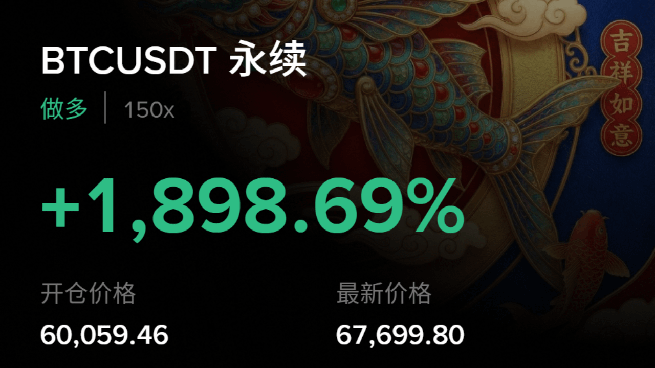 家人们 今日份大饼吃下第二单! #BTC 突破67700