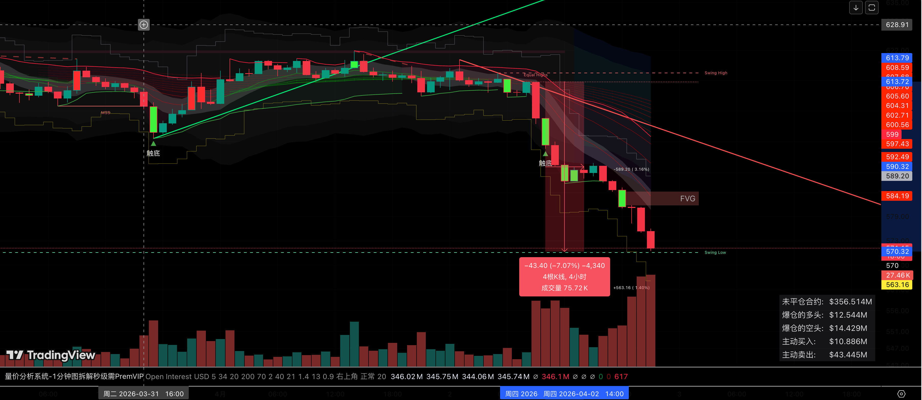 如果价格无法收回 584 元(FVG 上沿):那么 BNB 可能会进入一个较长周期的阴跌或横盘,寻找更深层的底部(约 520 - 540 附近)。
