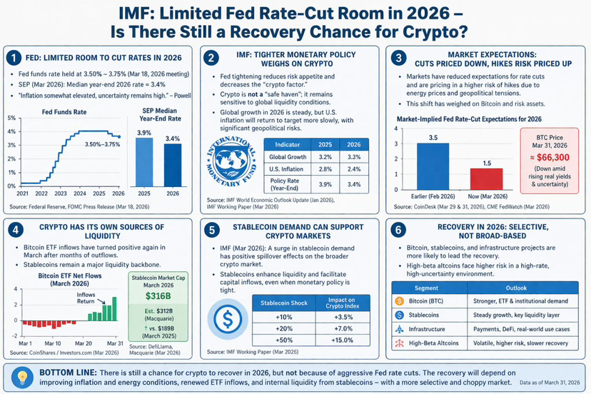 Điều đó đúng là khó cho crypto, vì chính IMF từng có nghiên cứu cho thấy Fed thắt chặt làm giảm “crypto factor” qua kênh giảm khẩu vị rủi ro; nói cách khác, crypto hiện không còn vận động như một “nơi trú ẩn độc lập” như nhiều người từng kỳ vọng. IMF cũng dự báo tăng trưởng toàn cầu 2026 vẫn khá ổn, nhưng lạm phát Mỹ sẽ về mục tiêu chậm hơn và rủi ro địa chính trị vẫn là downside lớn.