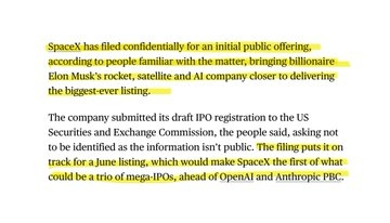 🧠 xAI was merged into SpaceX in February and is burning $1 billion a month. The entire IPO thesis hinges on Starlink’s margins carrying xAI’s losses long enough for orbital AI data centers to become real. That’s a massive bet hidden inside a "simple space company" listing.