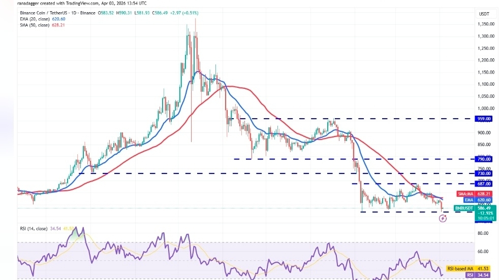 If BNB manages to move up and break above the moving averages