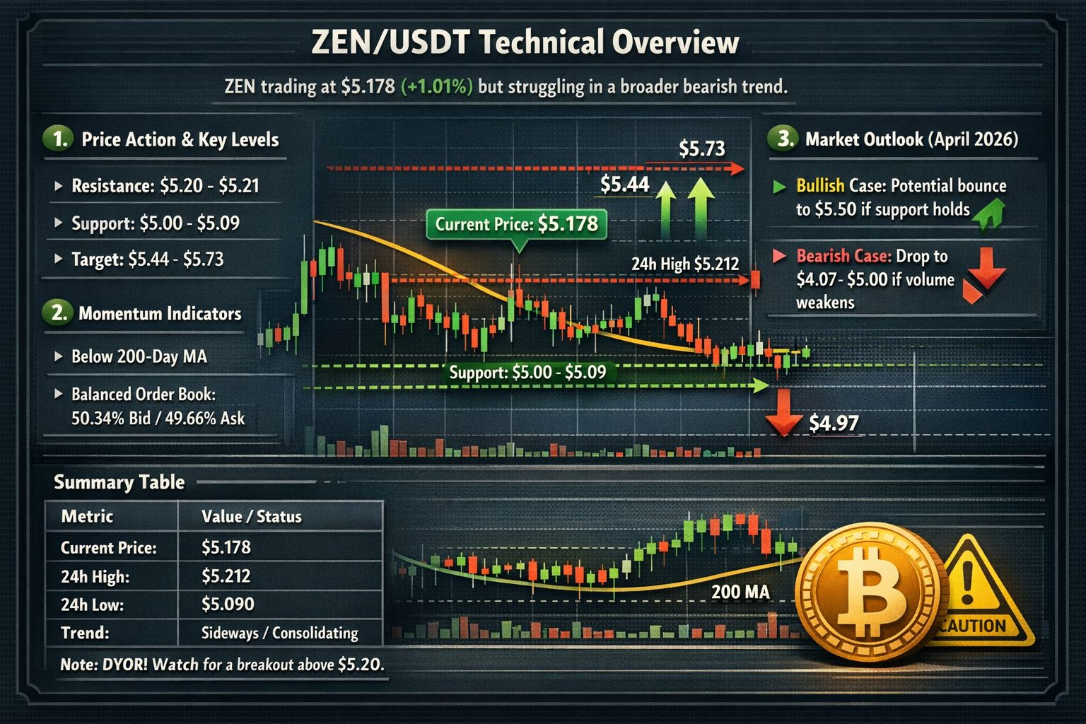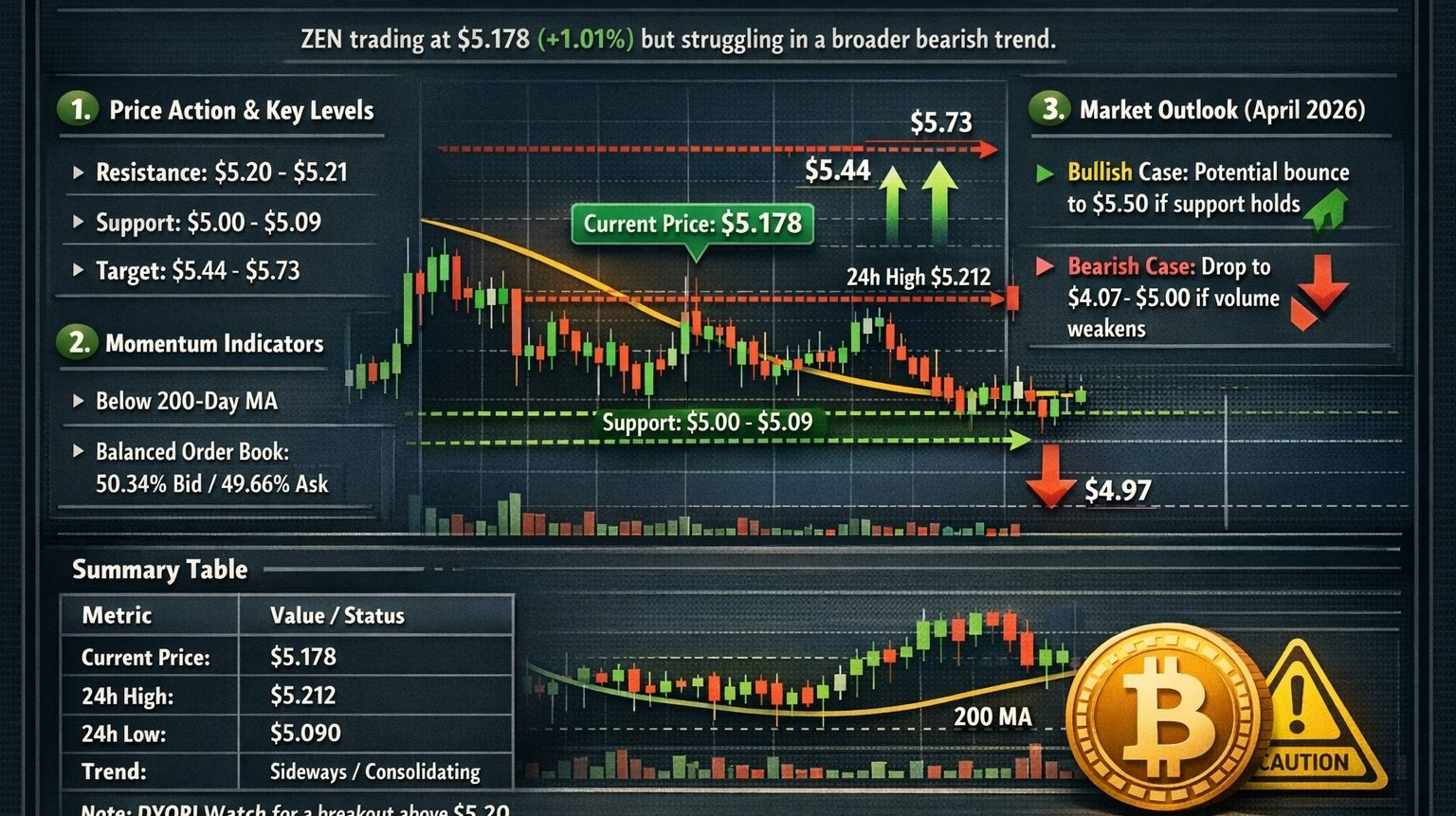Bullish Case: If ZEN holds the $5.10 level and Bitcoin remains stable, a "relief rally" toward $5.50 is likely as RSI indicators suggest the coin is approaching oversold territory.