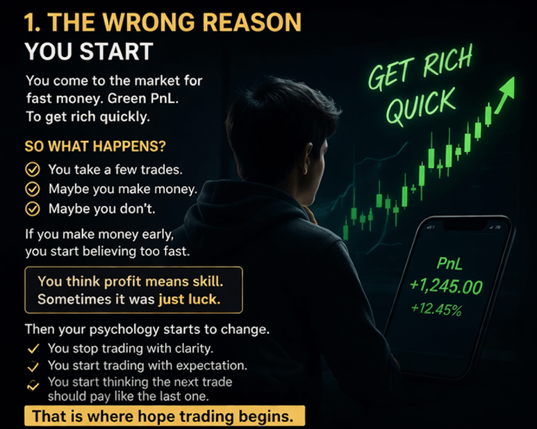 Maybe your first trade wins. Maybe you make some money. And that is where the trap begins. Because now you believe too early.